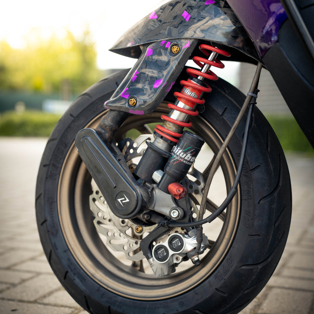 Le kit d'Ottopuntouno Remlawe New Era pour l'avant de Zip SP / Vespa offre de puissantes performances de freinage grâce à la griffe de frein à 4 pistons 8.1, qui est beaucoup plus forte que l'étrier d'origine à 2 pistons. Le kit contient un support ergal anodisé et est fourni avec des détails d'assemblage, y compris le boulon de connexion M8X1, les joints toriques d'étanchéité et un boulon de connexion de réduction M8-10 pour une utilisation avec un tube standard de Ø10 mm. Pour un montage optimal avec des pompes M10, nous recommandons un tuyau tressé de 110 cm. Surtout pour une utilisation dans la course, non autorisée sur les routes publiques. Fabriqué en Italie, pour les meilleures performances.