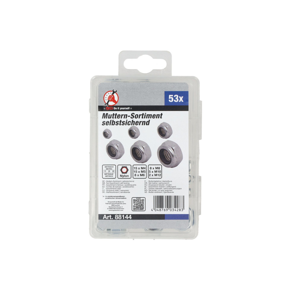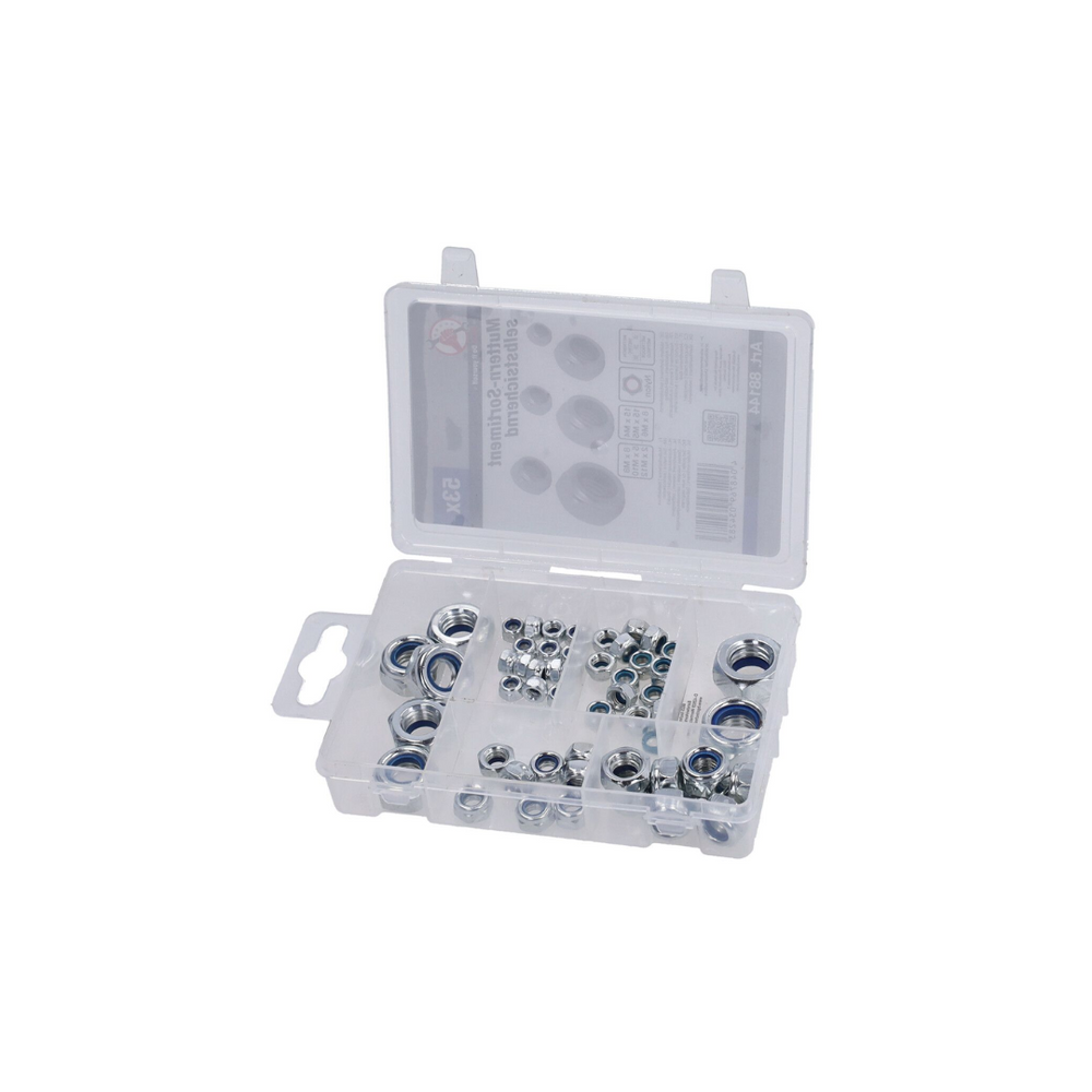 Deze complete borgmoeren set (53-delig) biedt een betrouwbare oplossing voor stevige en trillingsbestendige schroefverbindingen. De borgmoeren zijn voorzien van een geïntegreerd nylon inzetstuk, waardoor ze perfect op de schroefdraad klemmen en losdraaien door trillingen voorkomen. Ideaal voor professioneel gebruik in werkplaats, bouw en hobbyprojecten.