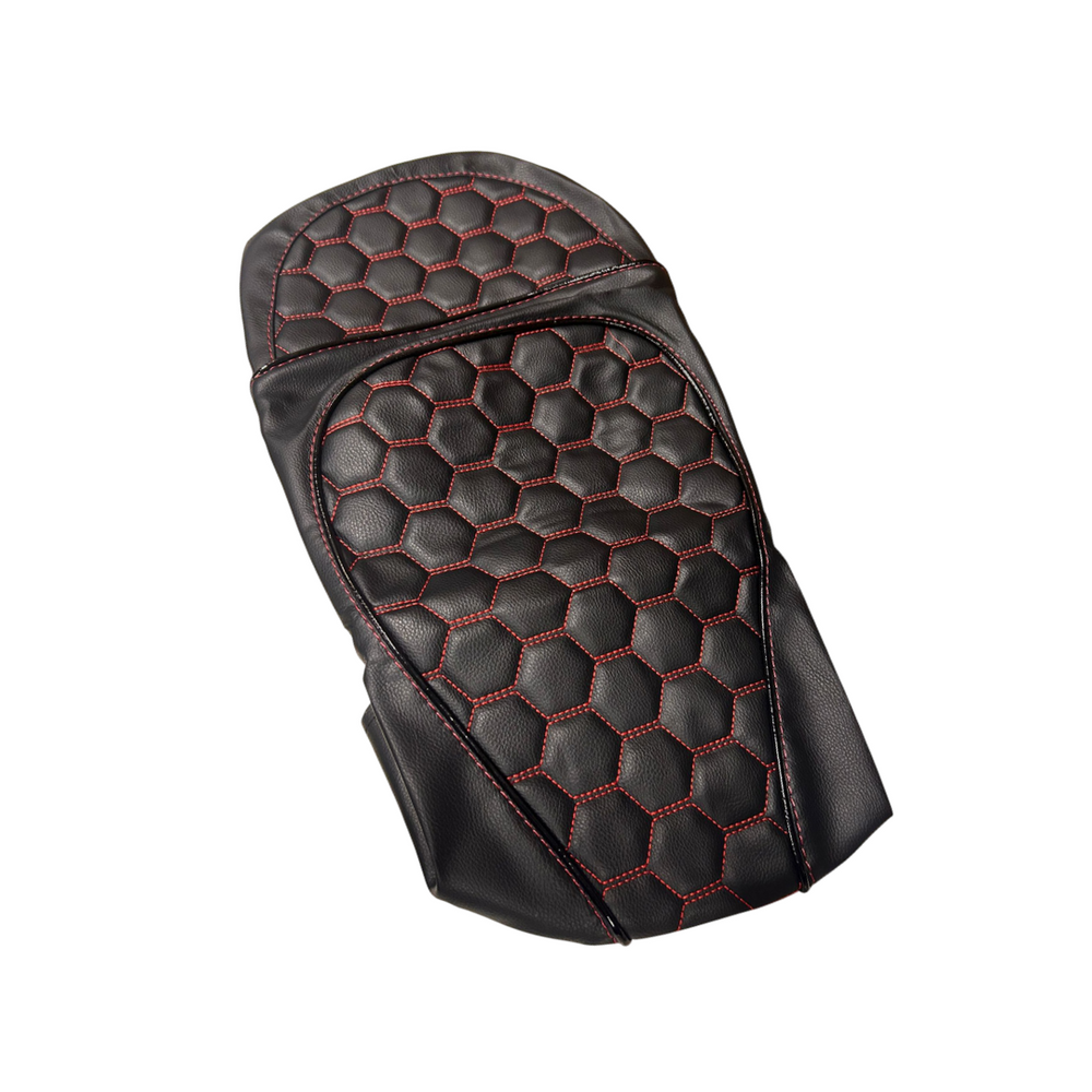 Améliorez votre Piaggio Zip 2T / 4T avec la couverture de selle RS Red! Fabriqué en cuir PU de haute qualité avec un élégant finition plate, Piping noir brillant et un motif d'hexagone élégant. La couture rouge assure une apparence sportive et exclusive. Fabriqué à la main avec un œil pour le détail et un ajustement parfait. Commandez maintenant et donnez à votre scooter un look unique!