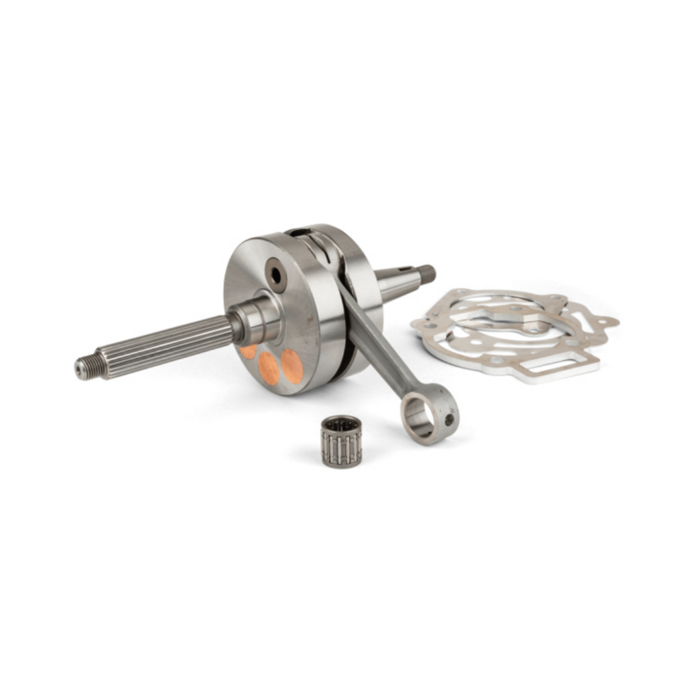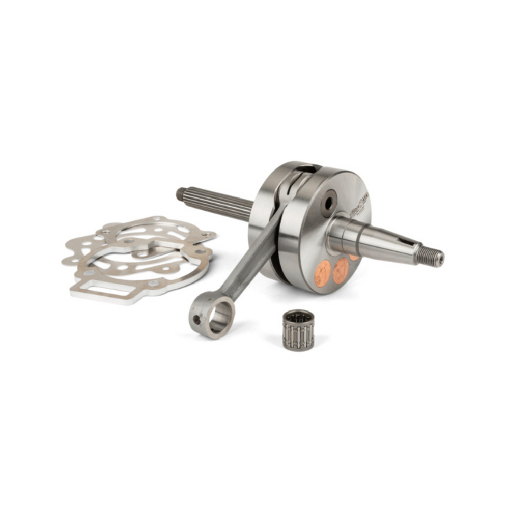 Diese Kurbelwelle verfügt über eine geschmiedete Pleuelstange mit silberner Schmiedeoberfläche für optimale Haltbarkeit. Durch die Änderung des Hubs von 52 auf 55 mm wird der Hubraum vergrößert, wodurch mehr Drehmoment und Spitzenleistung über den gesamten Drehzahlbereich bereitgestellt werden. Die mitgelieferten Zylinderkopf-Abstandshalter ermöglichen eine einfache Installation und Einstellung der Bohrungslänge und der Anschlusssteuerung.