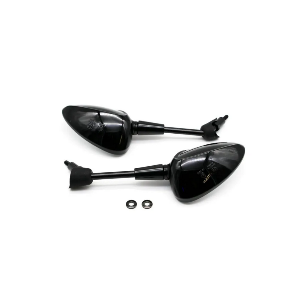 Die schwarze Oberfläche der Spiegel sorgt für ein elegantes und modernes Aussehen. Das tiefe, glänzende Schwarz kontrastiert wunderbar mit den helleren Farben des Rollers und sorgt für einen auffälligen optischen Effekt. Die schwarzen Vespa-Spiegel sind einfach zu montieren und passen perfekt zu den originalen Befestigungspunkten am Roller. Sie bestehen aus hochwertigen Materialien, die Langlebigkeit und Zuverlässigkeit gewährleisten. Darüber hinaus sind sie witterungsbeständig, was bedeutet, dass sie den Witterungseinflüssen standhalten und eine lange Lebensdauer haben.