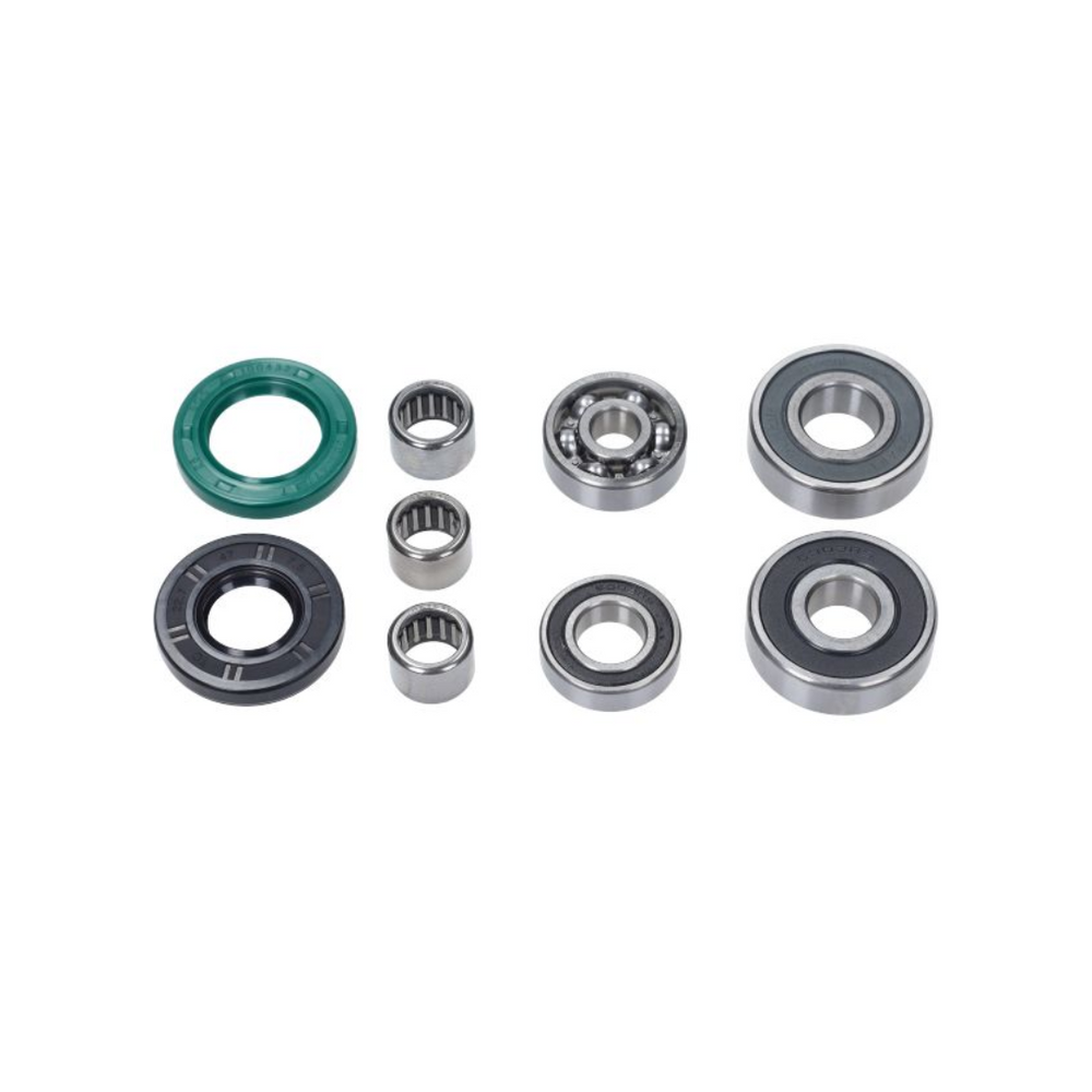 The Lower + Return set Transmission 9-piece M05/M06/M07/M08 is a complete set of high -quality bearings and seals, specially designed for the transmission of different engines and scooters. This 9-part set offers all necessary parts for an efficient and long-term operation of the transmission, which effectively prevents wear and leaks. Made from sustainable materials, this set ensures a perfect fit and reliable performance. Ideal for maintaining or repairing your transmission system, the Lower + Section Set Transmission 9-piece guarantees optimum performance and a long service life.