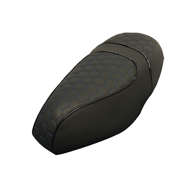 Upgrade your Piaggio ZIP 2T/4T with the saddle cover RS ​​Blue! Made of high-quality PU leather with a sleek flat finishing, shiny black piping and a stylish hexagon pattern. The blue stitching ensures a sporting and exclusive appearance. Handmade with an eye for detail and a perfect fit. Order now and give your scooter a unique look!