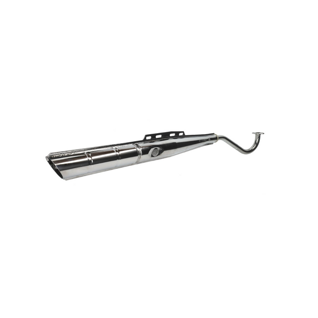 The Exhaust + logo 28mm chrome - Puch Maxi Is a premium exhaust that takes your Puch Maxi to a higher level. With a diameter of 28 mm, this chrome -colored exhaust offers improved performance, a more powerful sound and a sporty look. The stylish logo adds a unique touch, while the design fits perfectly with the Puch Maxi. This exhaust is the ideal choice for those who want to combine both speed and looks. Improve the driving experience of your Puch Maxi with this high-performance exhaust!