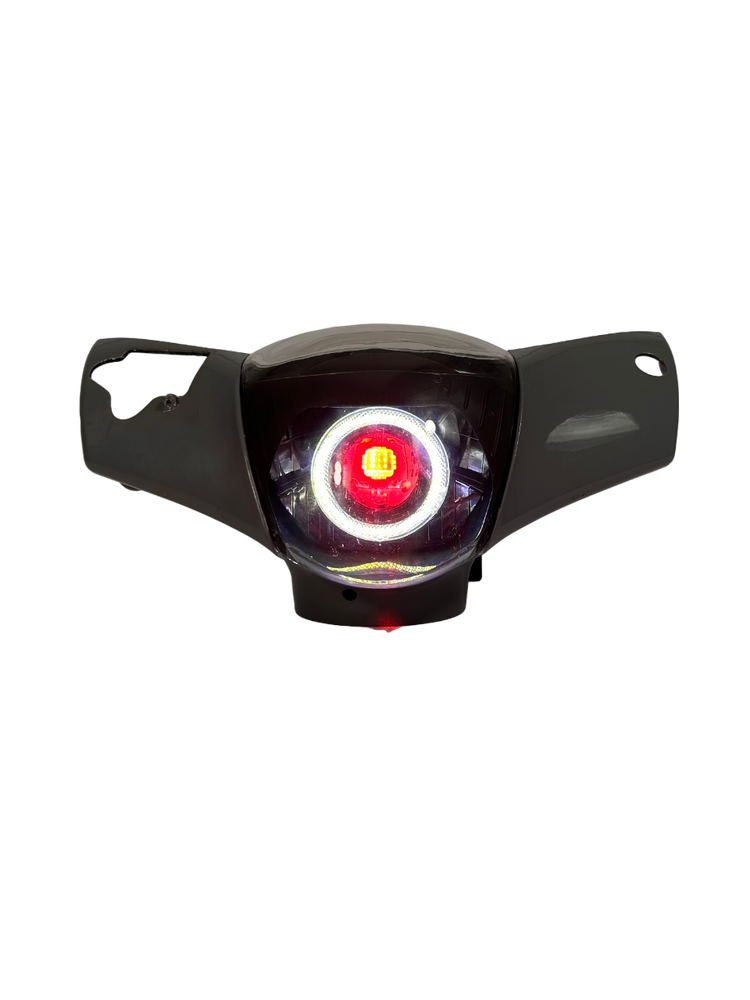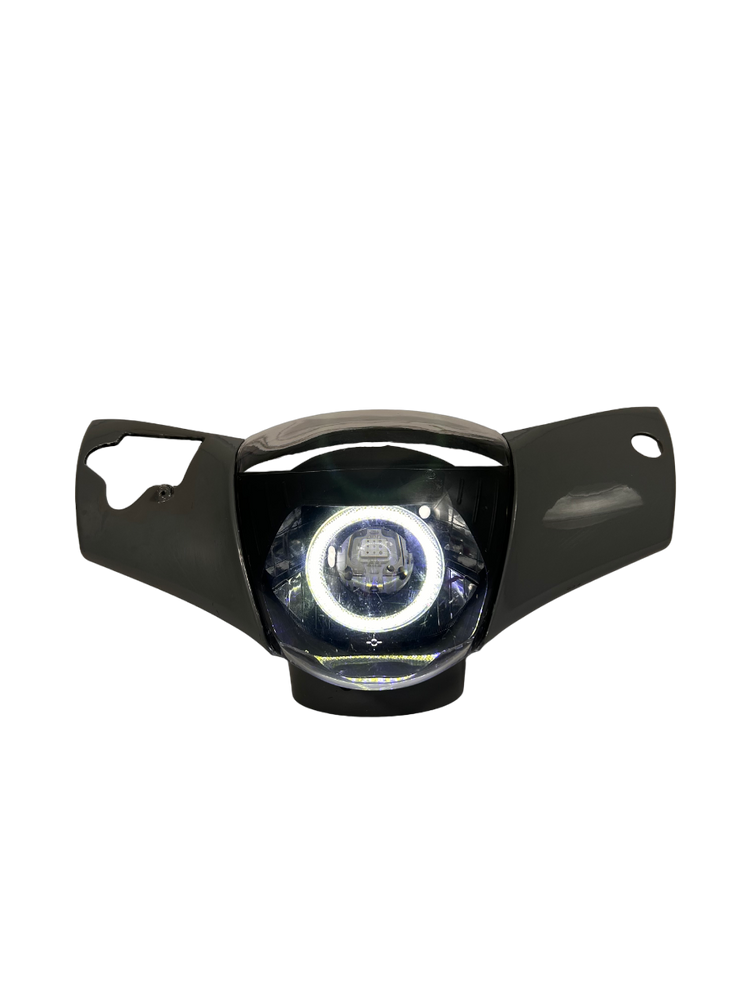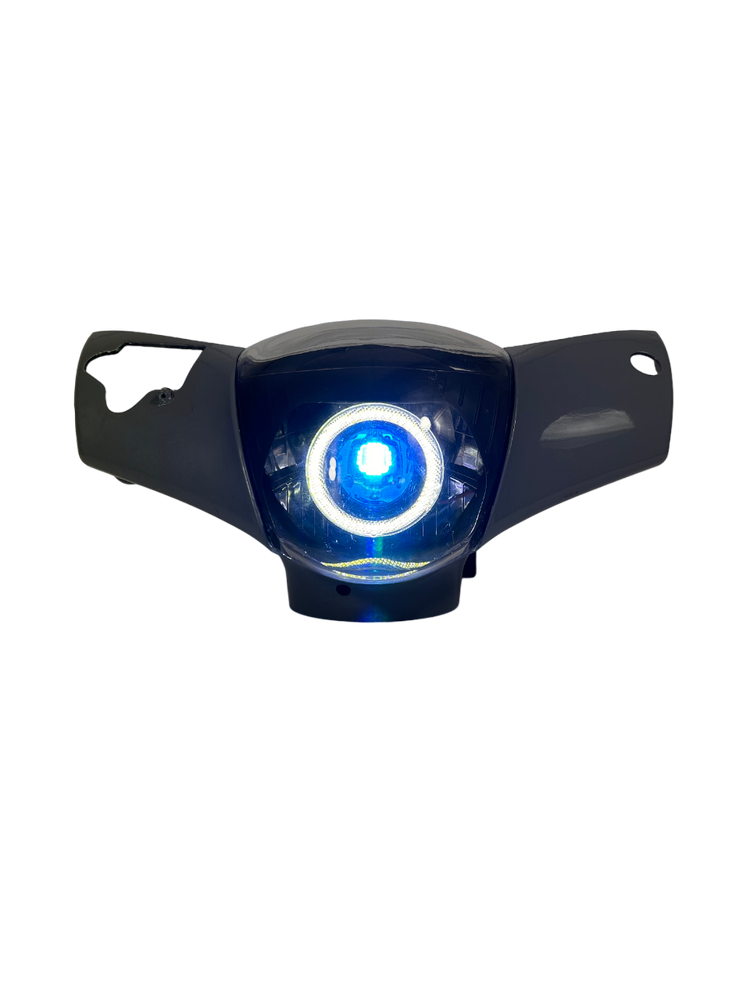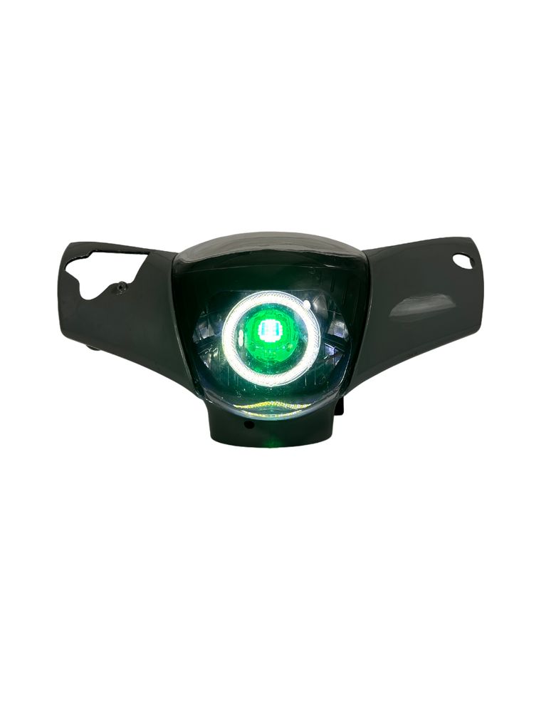 Discover the RGB Angel Eye Piaggio Zip - The ultimate upgrade for your Piaggio Zip Scooter! This beautiful round LED lamp is not only a stylish addition to your scooter, but also provides an impressive lighting. With our easy -to -follow assembly video (for a ZIP 4 stroke carburetor model, with Iget Model only change white wire of the contact in the orange) that you get via the mail after the purchase you can effortlessly install this lamp in the headlight unit of your Piaggio Zip, without hassle or extra costs for professional installation.