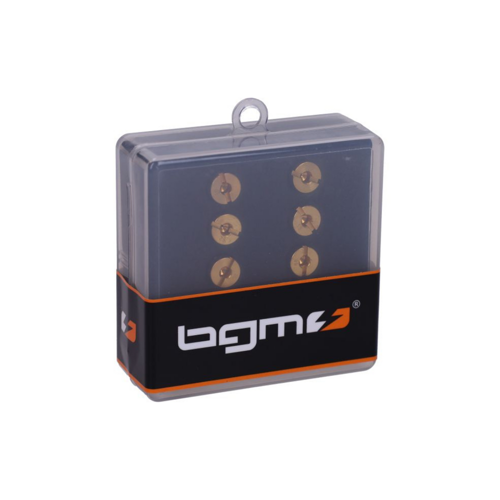 The bgm sprinkling set BGM 6mm 50-72 10-piece is a versatile set of 10 nozzles that is suitable for Dell'orto carburetors. This set contains nozzles with sizes ranging from 50 to 72, so you can choose the perfect size for your motorcycle or vehicle. The nozzles ensure accurate fuel mixing, which contributes to better performance and efficiency of your carburetor. Ideal for motorcycle enthusiasts who want to optimize their Dell'orto carburetors for a smoother effect and better performance.