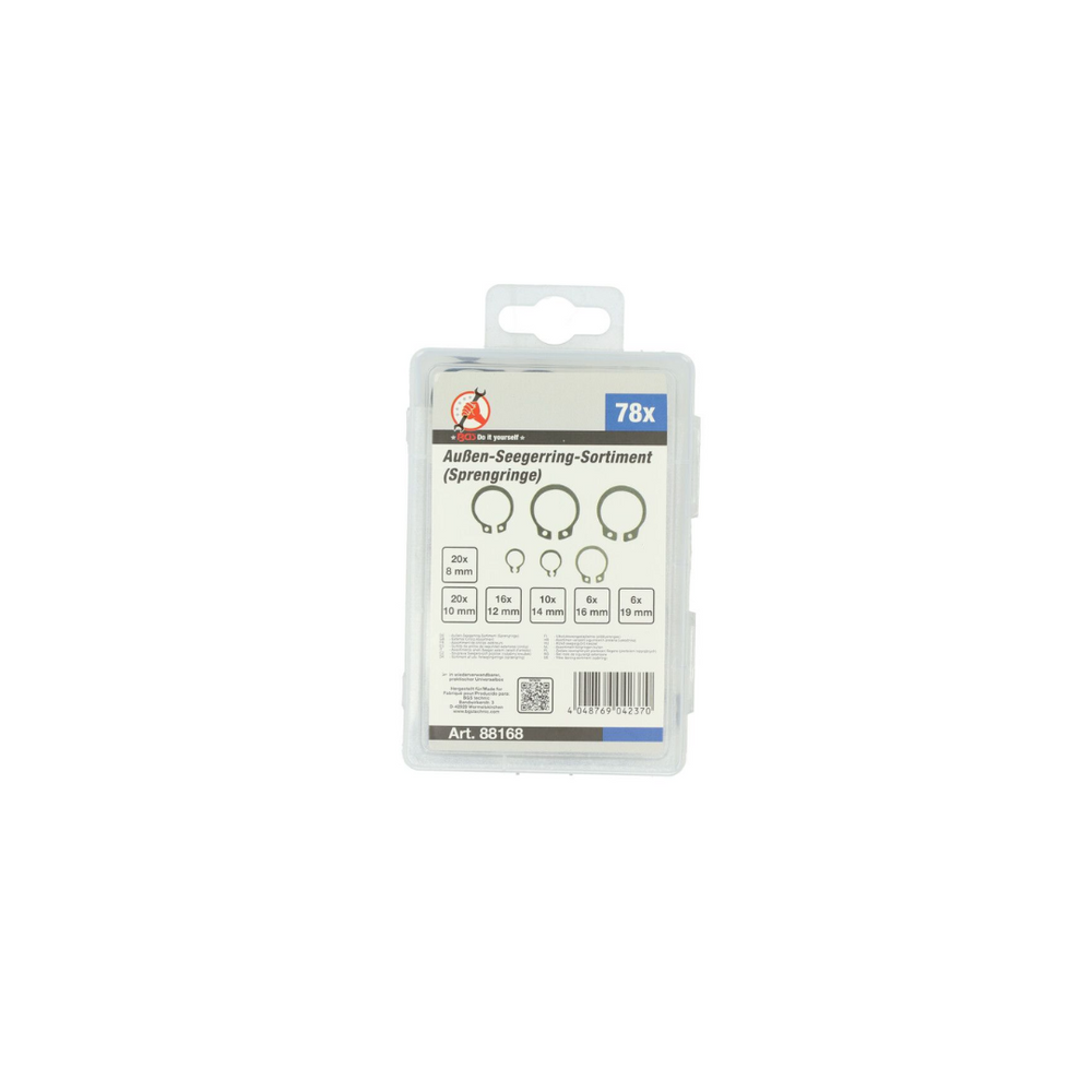 Deze uitgebreide 78-delige set externe asborgringen is ideaal voor montage- en reparatiewerkzaamheden in werkplaats, garage of industrie. De borgringen zijn vervaardigd uit hoogwaardig chemisch gezwart staal, waardoor ze duurzaam, slijtvast en goed beschermd zijn tegen corrosie.