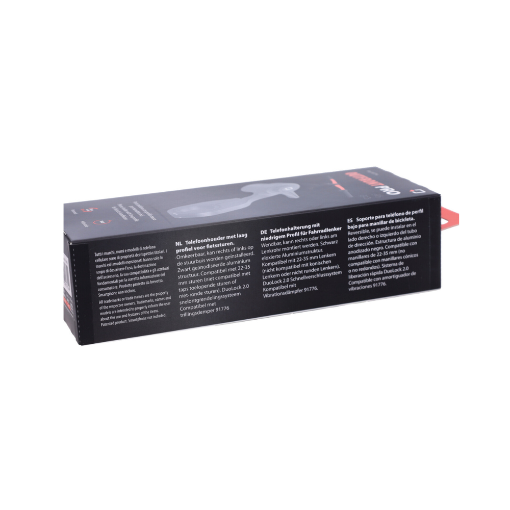 Il supporto per telefono Lampa Manubrio 22–35MM Fatbike Outfront Pro è destinato al montaggio su manubri di bicicletta con un diametro rotondo da 22 a 35 mm. Questo supporto a basso profilo può essere montato in modo reversibile a sinistra o a destra del tubo sterzo e fornisce un supporto stabile e a basse vibrazioni per il tuo telefono. Grazie al sistema di sgancio rapido DuoLock 2.0, il tuo dispositivo può essere fissato e rimosso in modo rapido e sicuro.