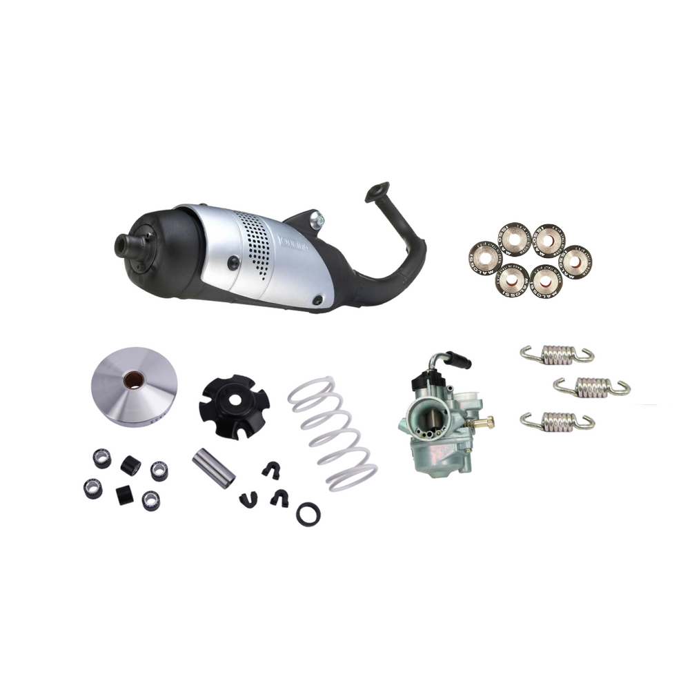 NB! Questo kit Boost è realizzato per i motori Piaggio a 2 ictus come Piaggio Zip 2000 2 tratti. Con questo kit guidarai circa 60/80 km/h a seconda della configurazione e dei denti. Il consiglio è di montare bromvertanding per una velocità massima più elevata.