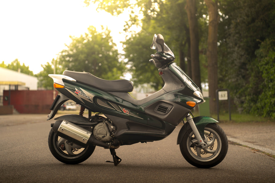 Ciò che rende questo corridore così unico è il colore verde scuro che non vedi spesso! Questo corridore è dotato di un cilindro Malossi 172CC e un sistema a doppio disco!