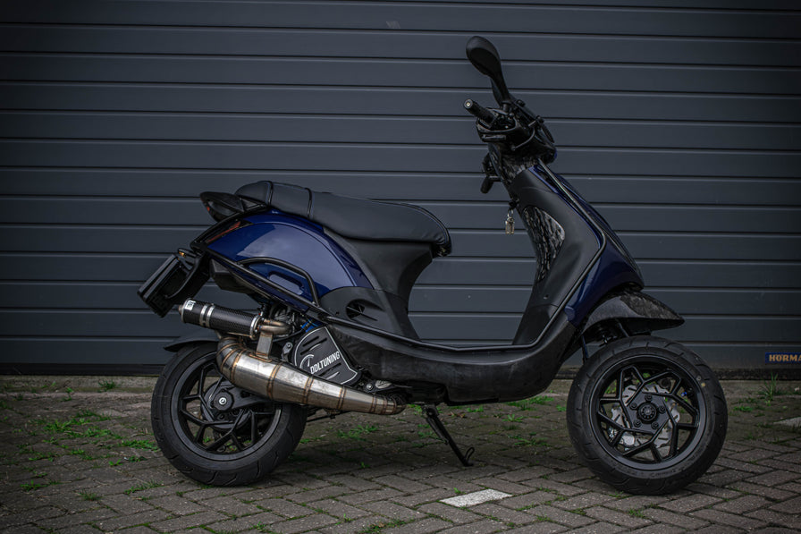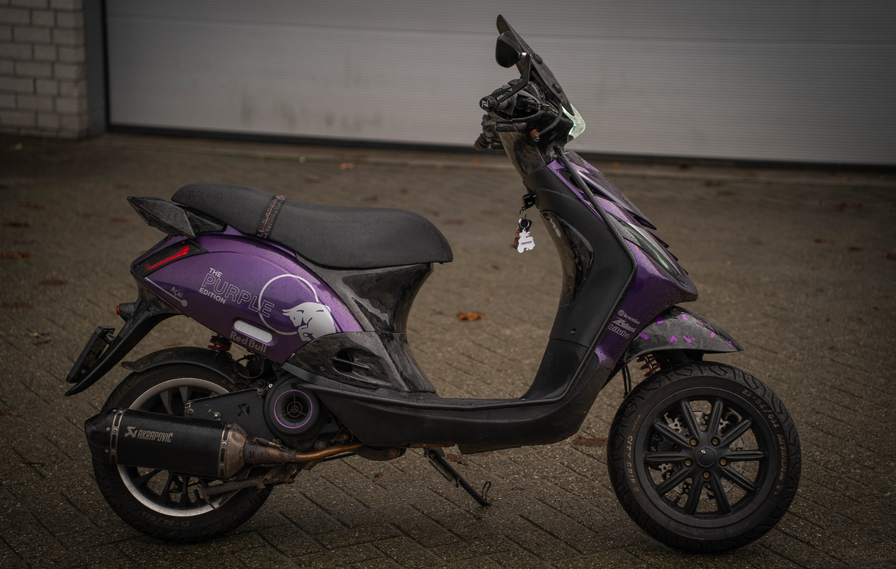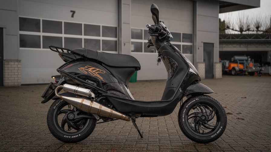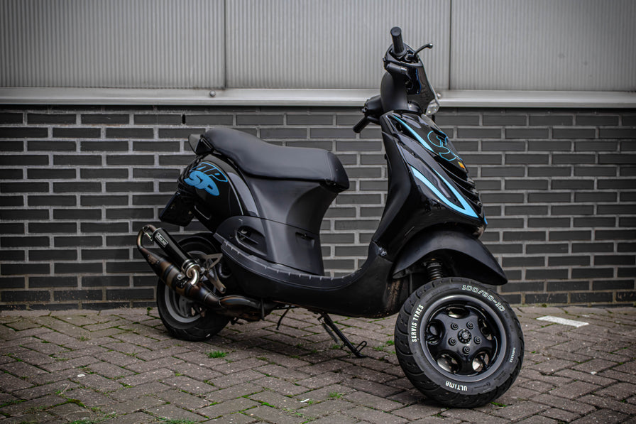 Deze bomvolle Piaggio Zip is niet alleen kwa looks aangepakt maar ook motorisch! Met o.a. de 80cc Cilinder van Malossi en de Fenom E5 Secundaire vertanding!
