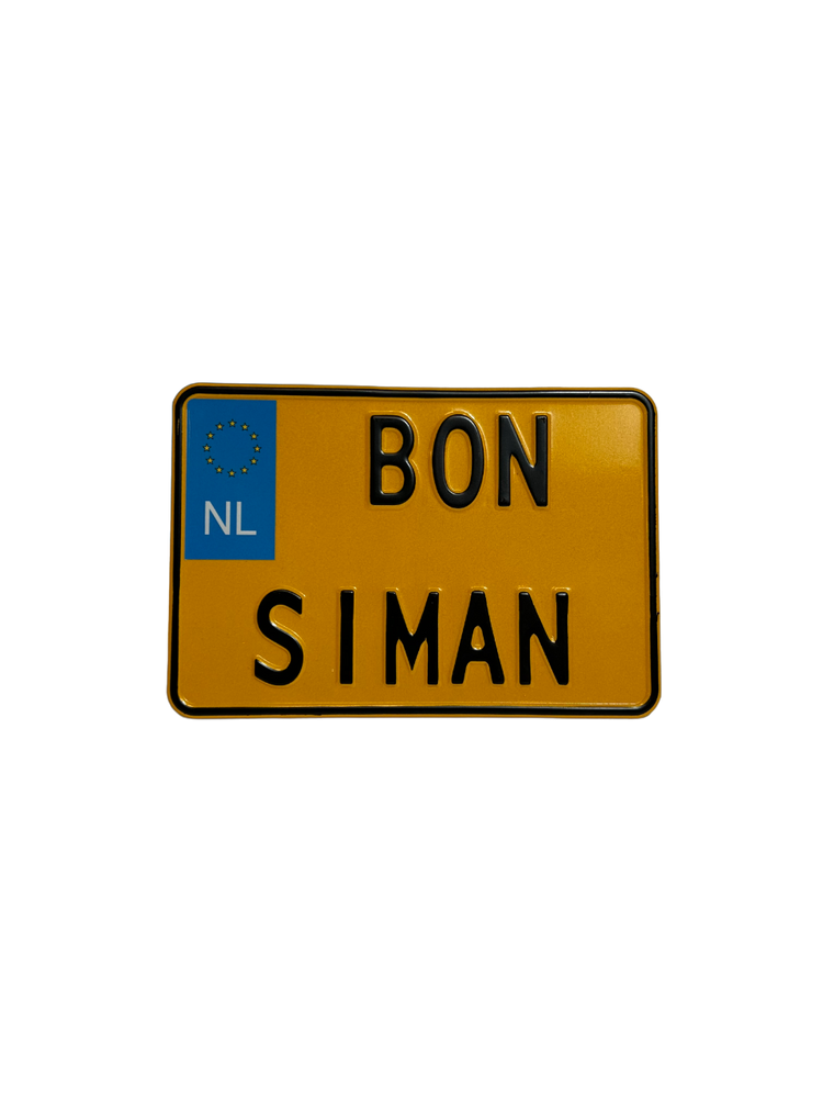 La quantità massima del testo sulla targa è superiore (7 lettere senza spazi) e inferiore (7 lettere senza spazi), quindi un totale di 14 lettere, presta attenzione a questo durante l'ordine. Non è possibile inserire faccine o altri personaggi sulla targa (non appena questo viene fatto, la targa verrà inviata senza il segno speciale). Quando vengono scelti 5 o più lettere/numeri nella parte superiore della targa, il logo NL scadrà. Con le lettere di lusso la lettera W non può essere fatta e le lettere/numeri massimi 4 sono possibili e 4 lettere/numeri di seguito. (Non ricevi un adesivo NL, con 3 lettere/numeri sopra di esso, assicurati anche che se usi più lettere/numeri riceverai la normale stampa!)