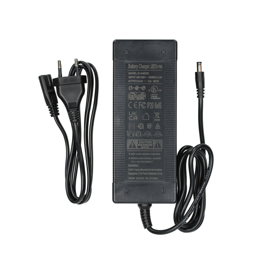 De 54.6V 2A acculader met 2.1 stekker is bedoeld voor de V20 Pro fatbike. Deze lader zorgt voor veilig en stabiel opladen van de accu en is ideaal ter vervanging van een defecte of verloren lader. Dankzij de juiste stekker past hij rechtstreeks op de bestaande oplaadpoort.