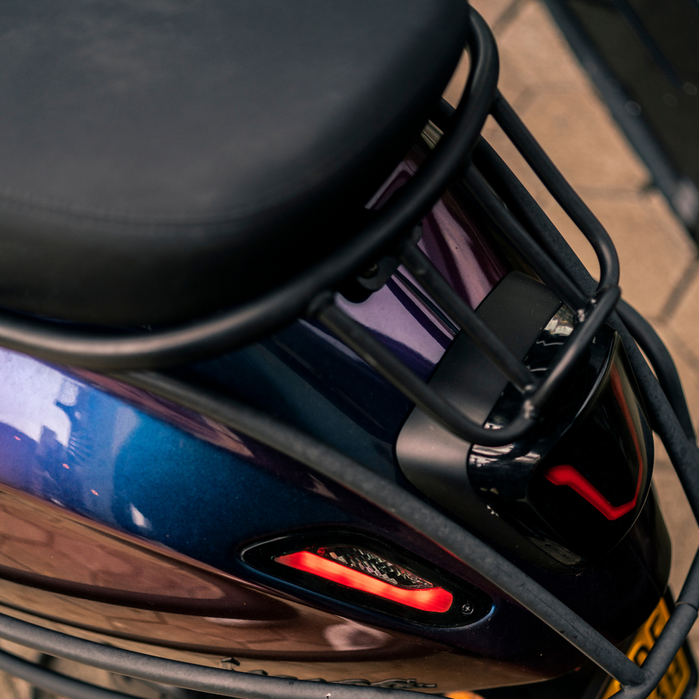 Upgrade je Vespa Sprint of Vespa Primavera met het stijlvolle Indo Style achterdrager in mat zwart! Deze hoogwaardige achterdrager combineert functionaliteit met een moderne uitstraling, waardoor je scooter niet alleen praktischer wordt, maar ook een chique, sportieve look krijgt. Het strakke design en de matte afwerking zorgen voor een elegante en eigentijdse uitstraling die opvalt.