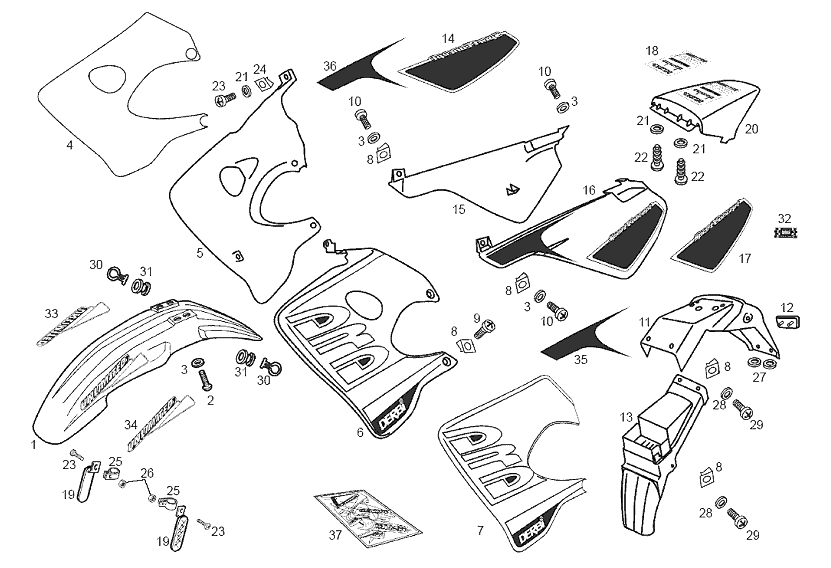 Derbi Senda SM 50 2T 2ª ED DRD 2002-2003 - Zijscherm & Achter Beplating