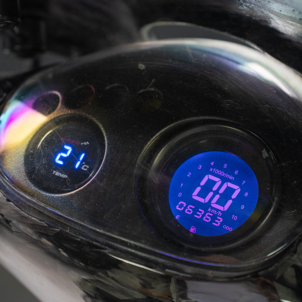 De Temperatuurmeter Koso 0-120 Graden Blauw is een compacte en nauwkeurige meter die ideaal is voor het monitoren van de temperatuur in voertuigen en motoren. Met een bereik van 0 tot 120°C en een nauwkeurigheid van 1°C, is deze meter perfect voor wie de motortemperatuur nauwkeurig wil volgen. Het blauwe display is duidelijk afleesbaar, en de meter knippert als de temperatuur boven de 120°C komt, wat een handige waarschuwing biedt. De i-Gear (Coin Style) meter werkt op 12V accuspanning en wordt geleverd met een PT1/8 temperatuursensor, Engelstalige handleiding, en bevestigingsmaterialen. Geschikt voor universeel gebruik en eenvoudig te installeren.