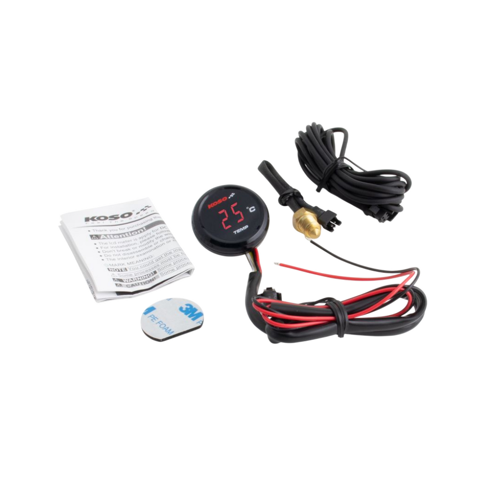 De Koso temperatuurmeter 0-120 graden rood combineert precisie en functionaliteit in een compact ontwerp. Deze digitale thermometer biedt een temperatuurbereik van 0-120°C of 32°F-248°F, met een nauwkeurige weergave in stappen van 1°C of 1°F. Bij temperaturen boven 120°C/248°F knippert de meter om oververhitting te signaleren. Werkt op DC12V en is gebouwd volgens de JIS D 0203 S2-standaard. Met afmetingen van ø 40 x 11 mm en een gewicht van slechts 24 g, past deze slanke meter perfect op elk voertuig. Ideaal voor motoren, scooters en brommers!