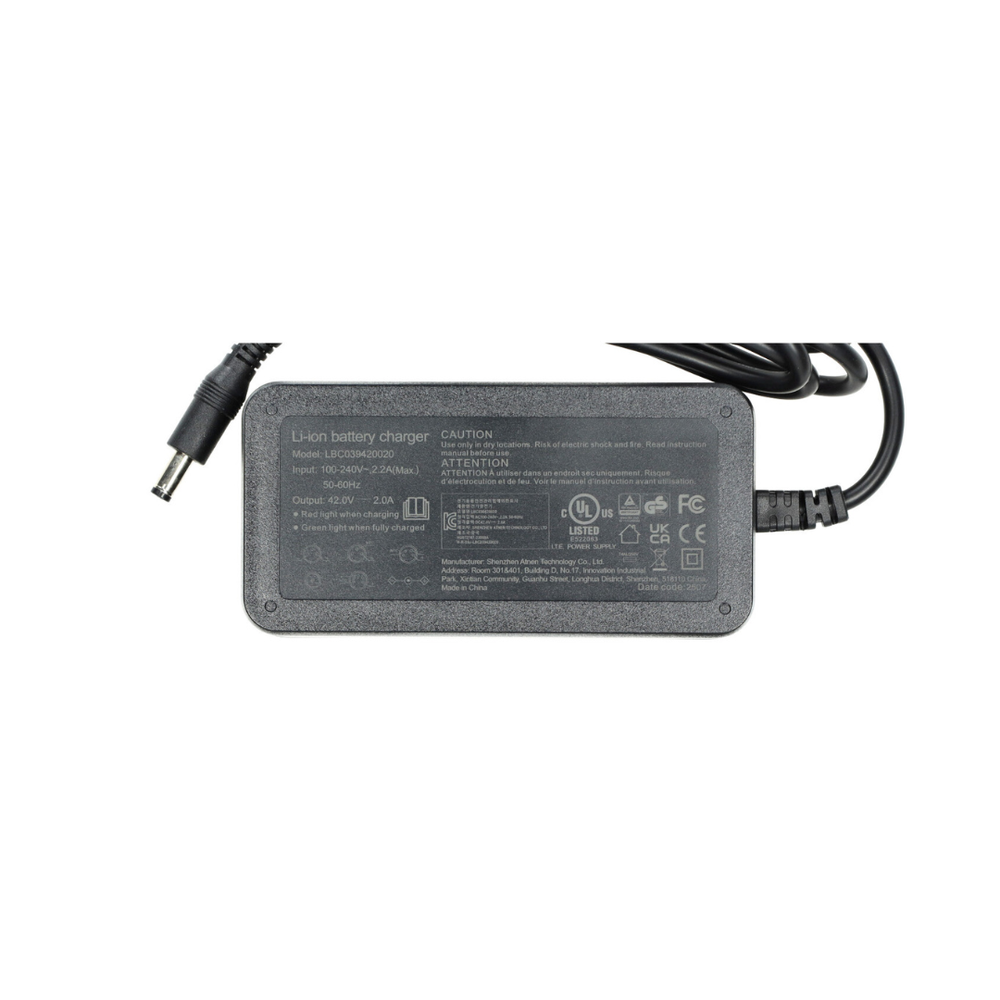 De 42V 2A acculader met DC 5.5–2.1 aansluiting is bedoeld voor de V8 Mini fatbike. Deze lader zorgt voor veilig en stabiel opladen van de accu en is ideaal ter vervanging van een defecte of verloren lader. Dankzij de juiste stekker past hij rechtstreeks op de bestaande oplaadpoort.