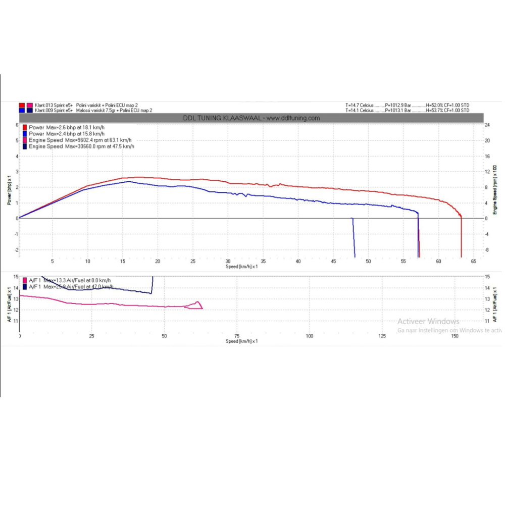 Map 3: Tot 10.000 tpm – Polini 78,8 cc cilinderkit + upgrade tandwielen + klepveren (optioneel: Polini variateur 6,3 g rollen).