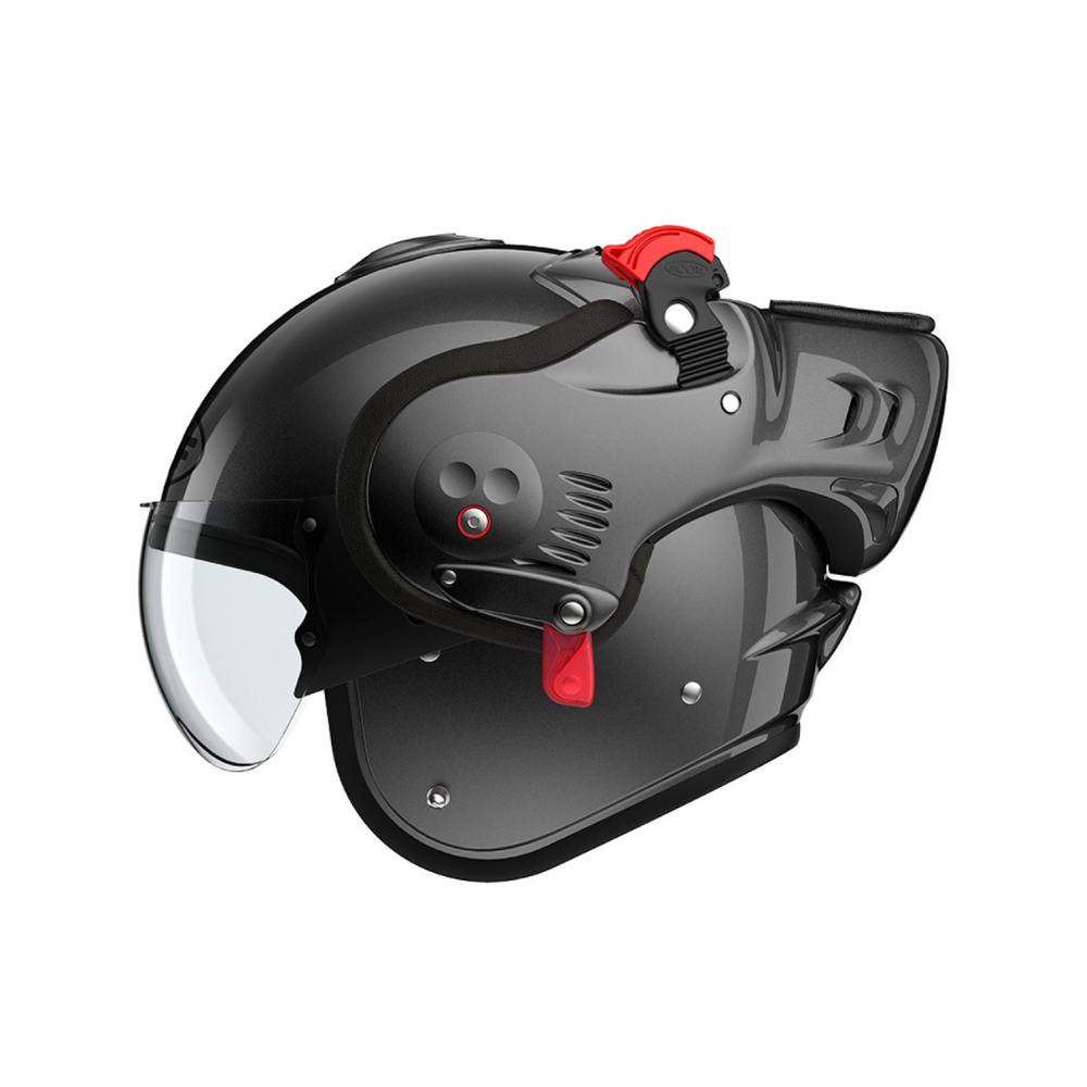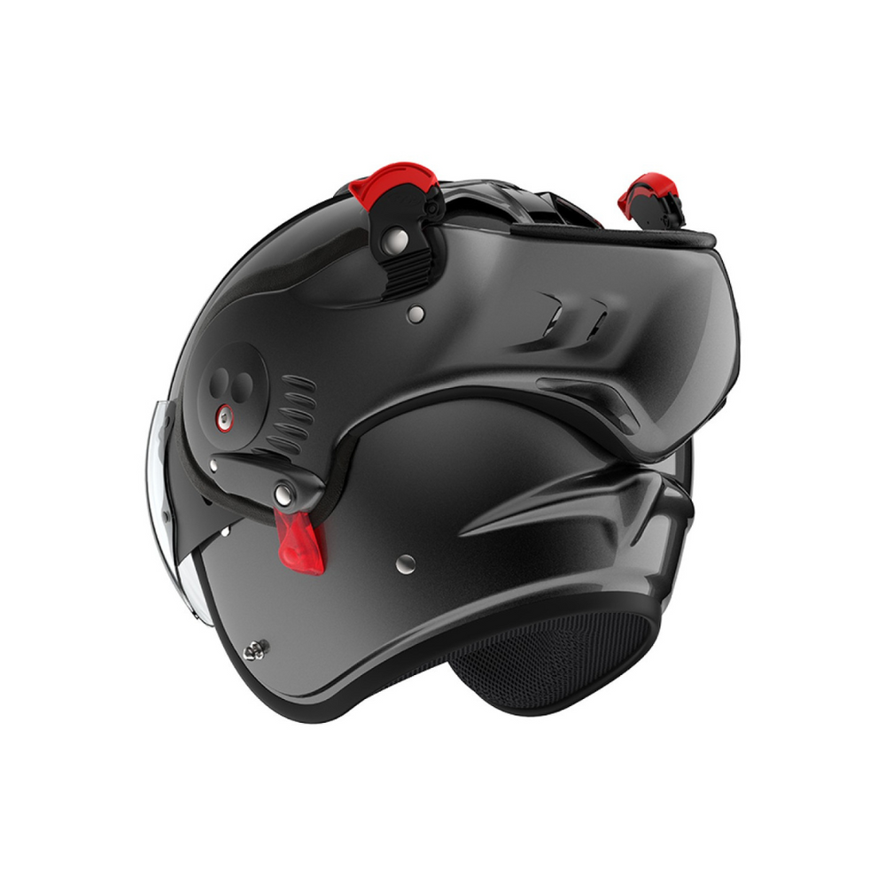 De Roof Boxer V8 Alpha is een ECE 22-06 gekeurde motorhelm met verbeterde aerodynamica, minder windruis en optimaal rijcomfort, zelfs op hoge snelheden.