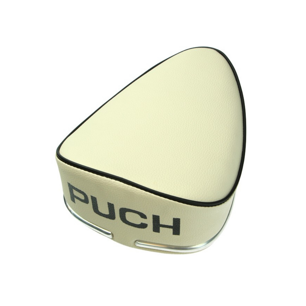 Het Zadel Creme Puch Condor / Maxi biedt de perfecte combinatie van retro stijl en comfort voor je Puch Condor of Puch Maxi. Het elegante crème ontwerp geeft je voertuig een vintage uitstraling, terwijl het ergonomische ontwerp zorgt voor een comfortabele zit tijdens je ritten. Dit zadel is speciaal ontworpen voor deze klassieke modellen en biedt zowel duurzaamheid als een uitstekende rijervaring.