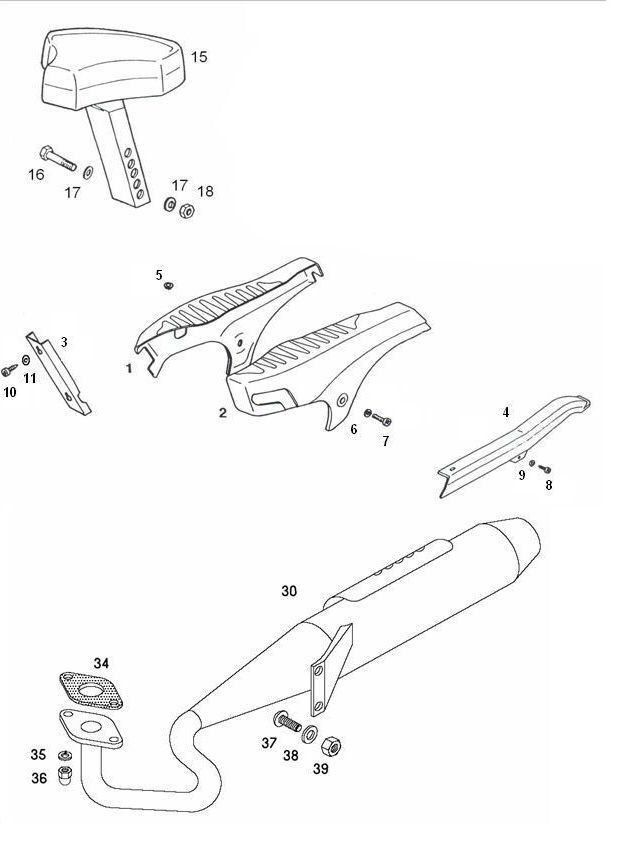 Tomos A3 / A35 - Zadel, Uitlaat, Treeplank & Kabelgoot